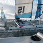 Navegação em ventos superiores a 12 nós, transições rápidas, uso do harnés, desvirar